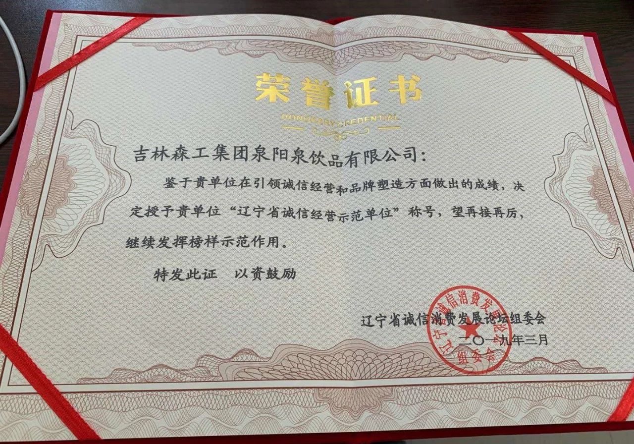? ? ? ? ?為了更好地貫徹落實(shí)習(xí)近平總書記在民營企業(yè)家座談會上的講話精神,以“保質(zhì)保量、誠信經(jīng)營、綠色消費(fèi)”為主題,樹立一批“講誠信,負(fù)責(zé)任,守法紀(jì)”的先進(jìn)典型。為企業(yè)與企業(yè)之間、企業(yè)與單位之間、企業(yè)與消費(fèi)者之間搭建了一個(gè)很好的交流、合作平臺。在此次論壇中,吉林森工集團(tuán)泉陽泉有限公司榮獲“遼寧省誠信經(jīng)營示范單位”榮譽(yù)稱號。